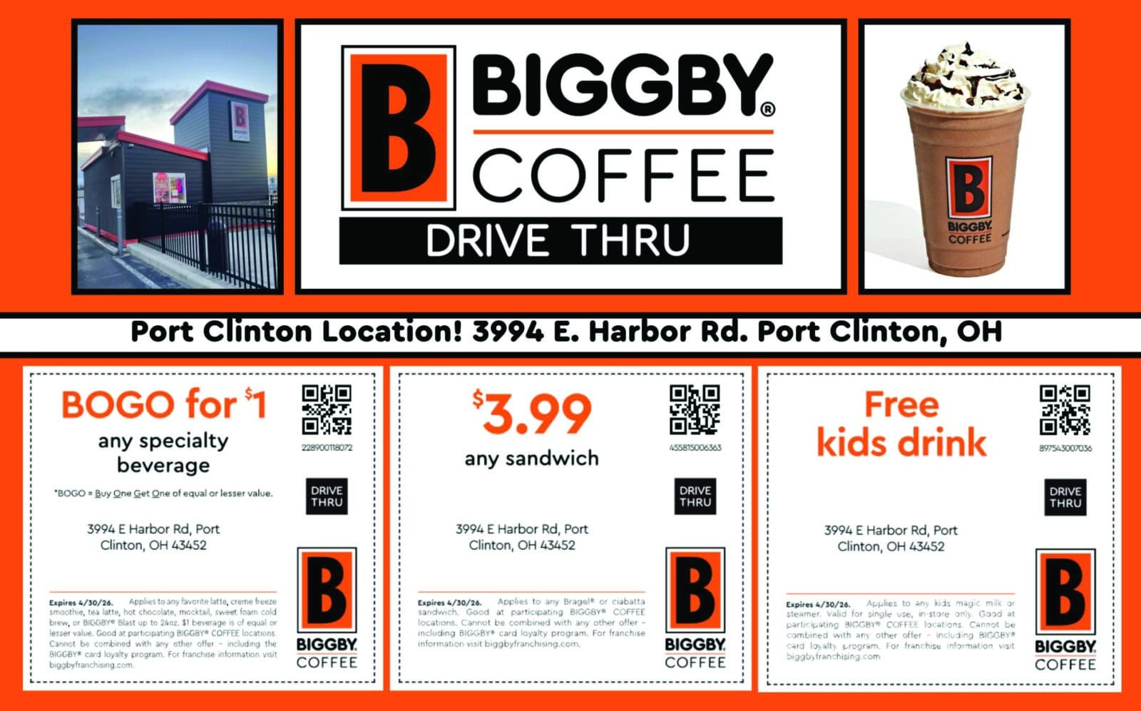 Located in Downtown Port Clinton Gourmet Coffees, Large Variety of Teas, Frozen Smoothies & Sodas, Breakfast Specialties, Deli Sandwiches, Fresh…